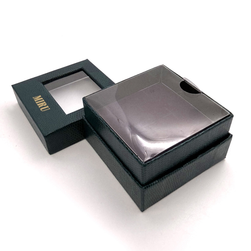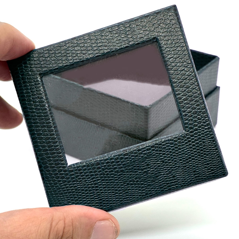 SIZE 가로 70mm * 세로 70mm * 높이 45mm 해당 샘플의 큰 특징 중 하나는 바로 고급스러운 가죽 패턴입니다 일반 종이 박스는 매끈해서 조금 단조롭게 느껴지는데, 이건 손끝으로 만졌을 때 입체감이 살아 있어서 훨씬 고급스럽게 느껴집니다 케이스를 열지 않아도 안에 있는 제품이 보이니까, 마치 전시된 듯한 느낌을 줄 수 있거든요. 전면에는 브랜드 로고를 넣을 수 있습니다~ 금박 / 은박 등 다양한 컬러 선택도 가능해 브랜드 이미지에 맞춰 고급 포인트를 줄 수 있어요!